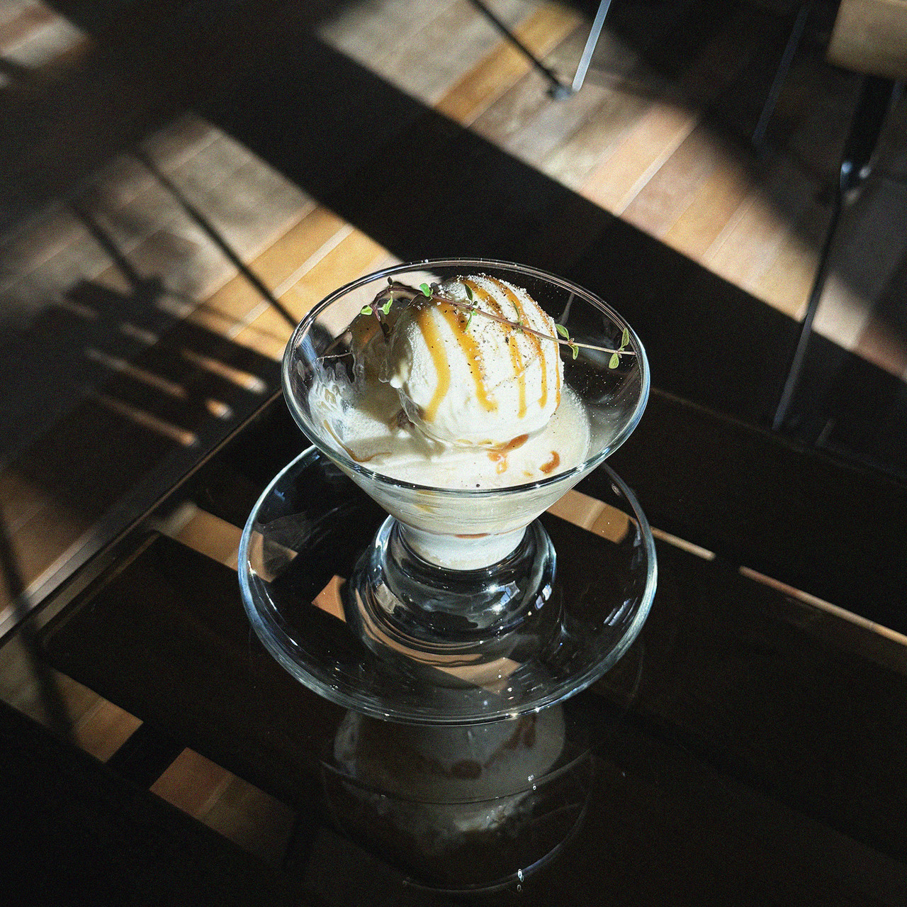 Vanilla ice cream, Whiskey, Caramel, Pepper